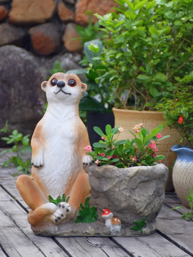 Best Quality Creative Meerkat Look Around In A Mushroom Bush Resin Santa Flower Pot Animal Statue Garden Decor I