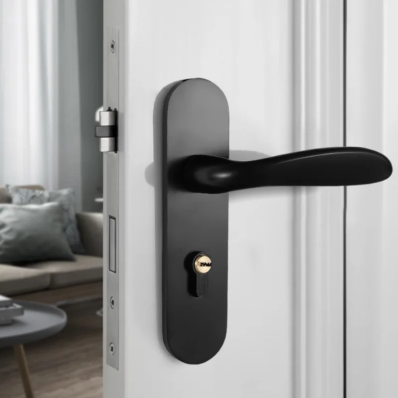 JD Space Aluminum Door Lock Indoor Bedroom Home Wooden Door Universal Furniture Handle American Bla