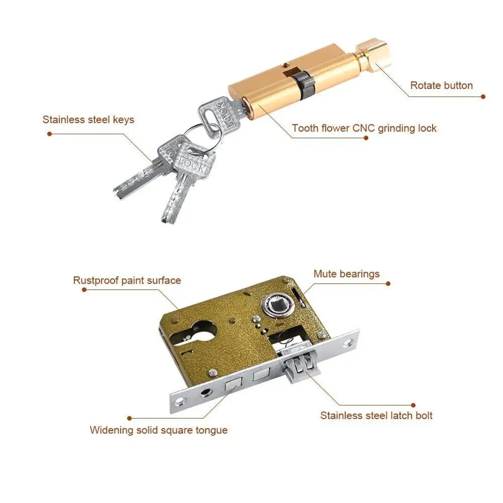 Door lock European retro aluminum vintage door lock with handle cover for indoor room home office1